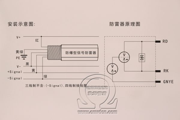 2.防雷器接地用盡可能最短的線連接。該保護(hù)器接地采用端子接地方式,接地線必須與防雷地線(或被保護(hù)設(shè)備的外殼)相連。信號(hào)的屏蔽線可直接接到接地端子上。