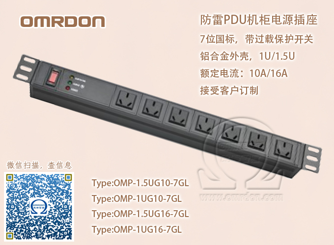 :深圳市歐姆雷盾科技有限公司 » 產品展示 » PDU機柜電源插座 » 防雷PDU機柜電源插座 1.5U國標7位 過載保護 OMP-1.5UG10-7GL