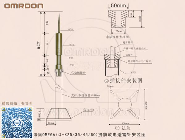 :深圳市歐姆雷盾科技有限公司 » 產品展示 » 避雷針 » 進口提前放電避雷針 » 法國進口OMEGA提前放電避雷針 Ω-X25/35/45/60